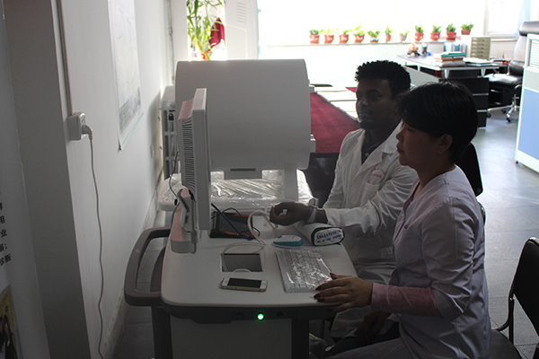 公司領導及于教授與留學生進行交流并指導學生進行實際操作