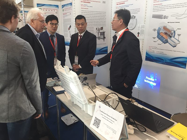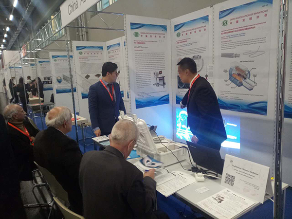 蕪湖圣美孚科技有限公司申報項目在順利通過國內多重審查遴選后,成為中國中醫診療設備企業代表,作為中國代表團成員參加了本次發明展。同時受邀參展的中國代表團項目成員還有清華大學、北京交通大學、北京宇航系統工程研究所、中國航天科技集團、國家電網公司等。11月2日展會開幕,中國駐德國大使館特派科技一秘李國強教授前來展會參觀中國代表團并鼓勵。