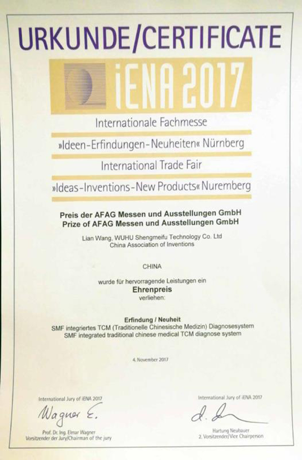 此次獲獎是公司繼榮獲科技部創新基金、國家高新技術企業、中醫診斷行業標準制定方、驗證方、首批入選“治未病服務適宜設備”、CE認證等多項榮譽之后取得的國際性發明大獎,是我公司科研實力、綜合實力不斷提升的重要標志。
